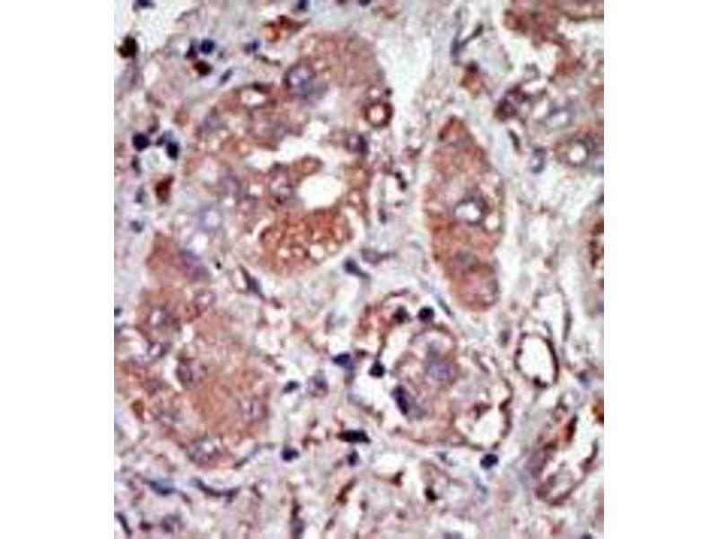 Interferon-induced, double-stranded RNA-activated protein kinase (PRKR) is a serine-threonine kinase. Activation by dsRNAs leads to autophosphorylation of PRKR and allows the kinase to phosphorylate its natural substrate, the alpha subunit of eukaryotic protein synthesis initiation factor-2 (EIF2-alpha), leading to the inhibition of protein synthesis. Human gamma-interferon (IFNG) mRNA exploits localized activation of PRKR in the cell to regulate its own translation. IFNG mRNA activates PRKR through a pseudoknot in its 5-prime untranslated region. The HCV envelope protein E2 contains a sequence identical with phosphorylation sites of the interferon-inducible protein kinase PRKR and the translation initiation factor EIF2-alpha, a target of PRKR. E2 inhibits the kinase activity of PRKR and blocks its inhibitory effect on protein synthesis and cell growth, which provides one mechanism by which HCV may circumvent the antiviral effect of interferon. PRKR, which is involved in TLR signaling and mediates apoptosis in fibroblasts in response to viral infection and inflammatory cytokines, also activates IKK and NFKB, thereby suppressing apoptosis. Apoptosis induced by live pathogenic gram-positive and gram-negative bacteria requirs both TLR4 and PRKR, possibly representing a major mechanism for pathogenic bacteria that use specific virulence factors to avoid detection and destruction by the innate immune system. Roles for PRKR activation in Huntington disease and Fanconi anemia have also been suggested.Synonyms: Eukaryotic translation initiation factor 2-alpha kinase 2, Interferon-induced double-stranded RNA-activated protein kinase, PRKR, Protein kinase RNA-activated, eIF-2A protein kinase 2, p68 kinase