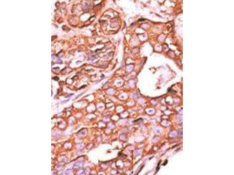 ELISA: 1/1,000. Western blotting: 1/100 - 1/500. Immunohistochemistry: 1/50 - 1/100. Other applications not tested. Optimal dilutions are dependent on conditions and should be determined by the user.