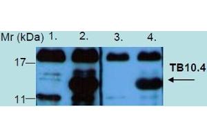 - The rabbit polyclonal antibody to Tb10.4 reacts with Mycobacterium tuberculosis protein Tb10.4 (EsxH).