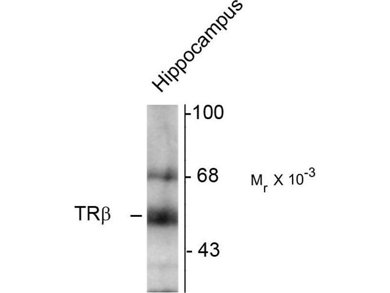 - Specific for endogenous levels of the ~55 kDa TR-β protein.