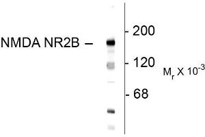 - Specific for endogenous levels of the ~180 kDa NR2B subunit of the NMDA receptor.