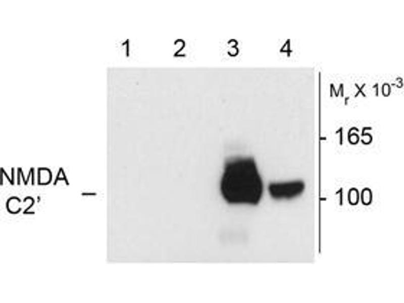 - Specific for endogenous levels of the ~120 kDa NR1 subunit of the NMDA receptor containing the C2' splice variant insert. No off-targets reported for the NR1 subunits of the NMDA receptor that do not contain the C2' insert.