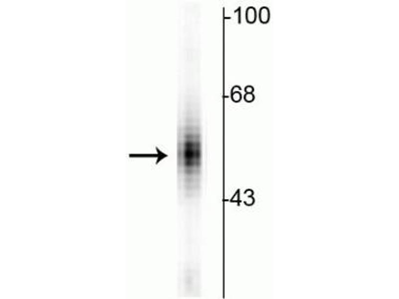 - Specific for endogenous levels of the ~55 kDa tryptophan hydroxylase protein.