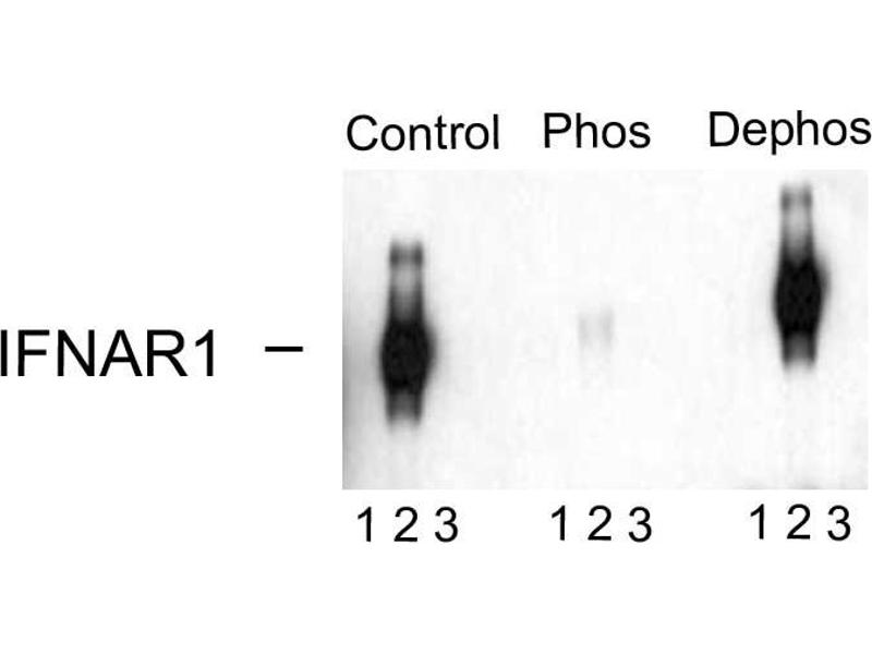 - Specific for IFNAR1 protein phosphorylated at Ser535,539. Note: the molecular weight of the IFNAR1 varies with cell line (different levels of glycosylation) in 293 and HeLa Cells, the mature form is ~110 kDa - 130 kDa.