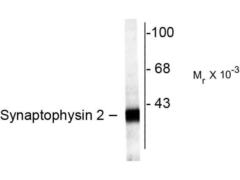 - Specific for endogenous levels of the ~38 kDa Synaptophysin 2 protein.