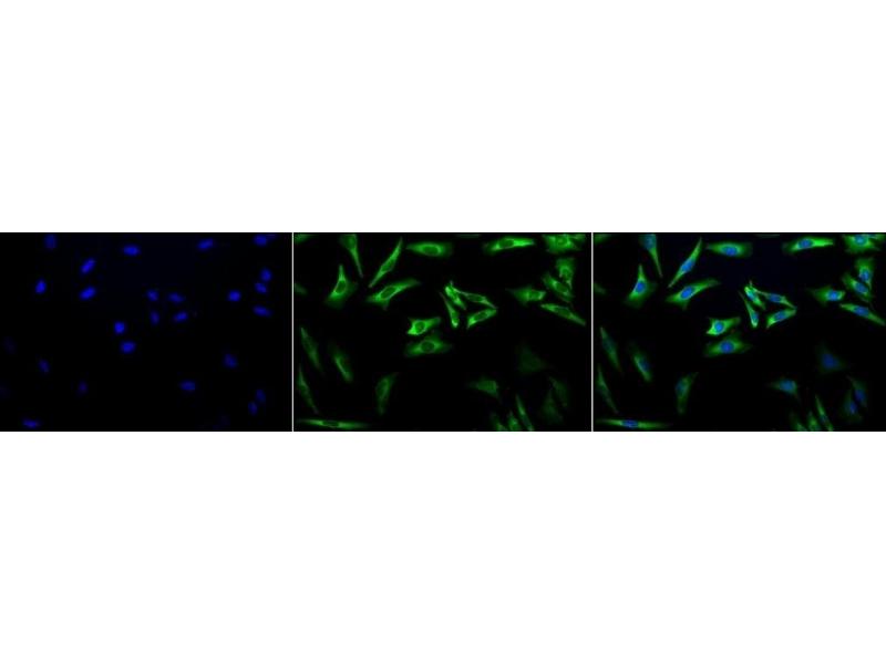 0.5 μg/ml of ABIN361649 was sufficient for detection of HSP27 in 10 μg of HeLa lysate by colorimetric immunoblot analysis using Goat anti-mouse IgG:HRP as the secondary antibody.