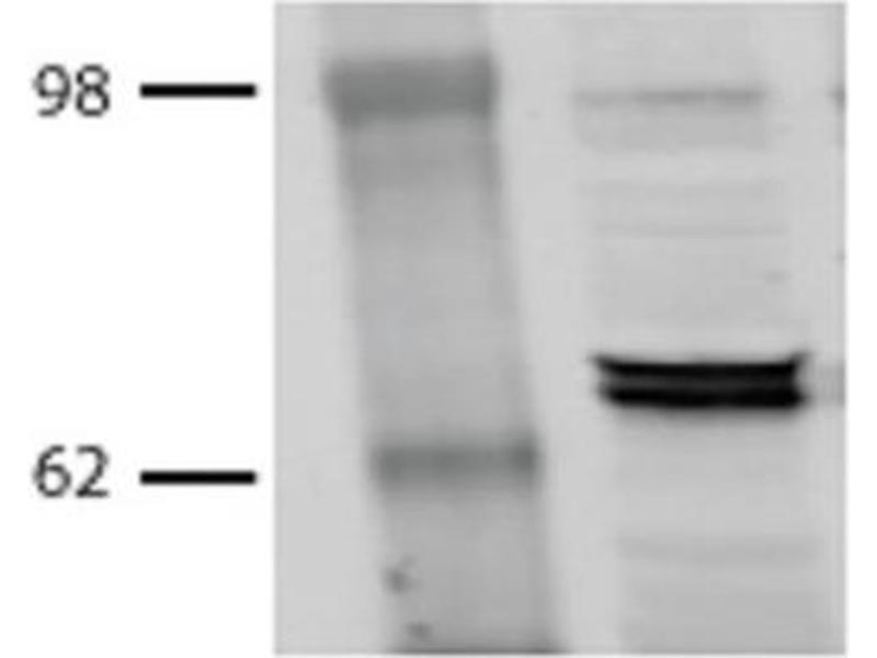 1 μg/ml of ABIN361709 was sufficient for detection of HSP70 and HSC70 in 20 μg of heat shocked HeLa cell lysate by colorimetric immunoblot analysis using Goat anti-mouse IgG:HRP as the secondary antibody.