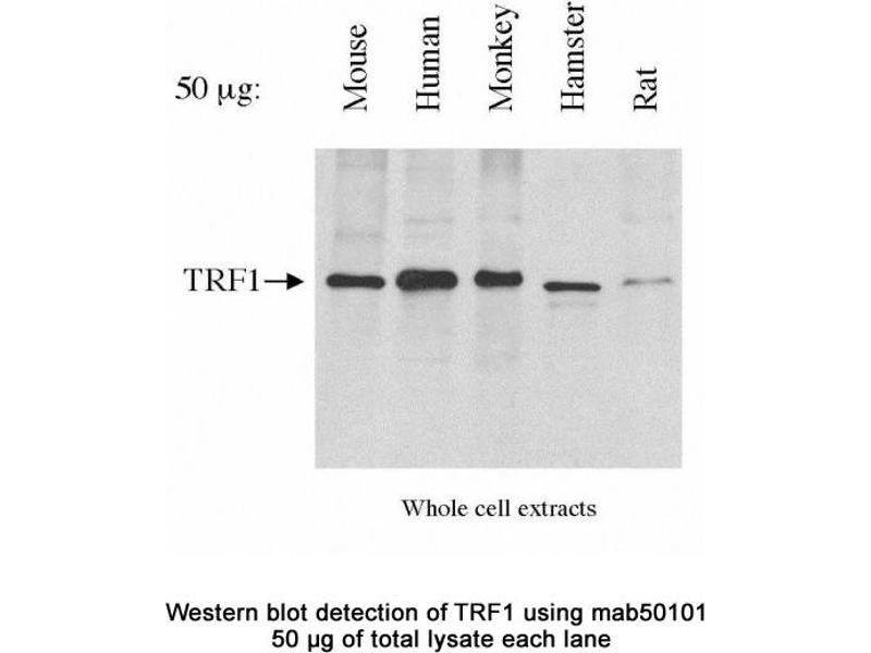 - Reacts with human ~60 kDa TERF1 protein (57-6)