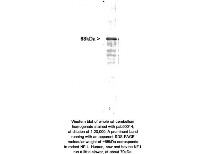 - Reacts with the light neurofilament subunit (~68 kDa)