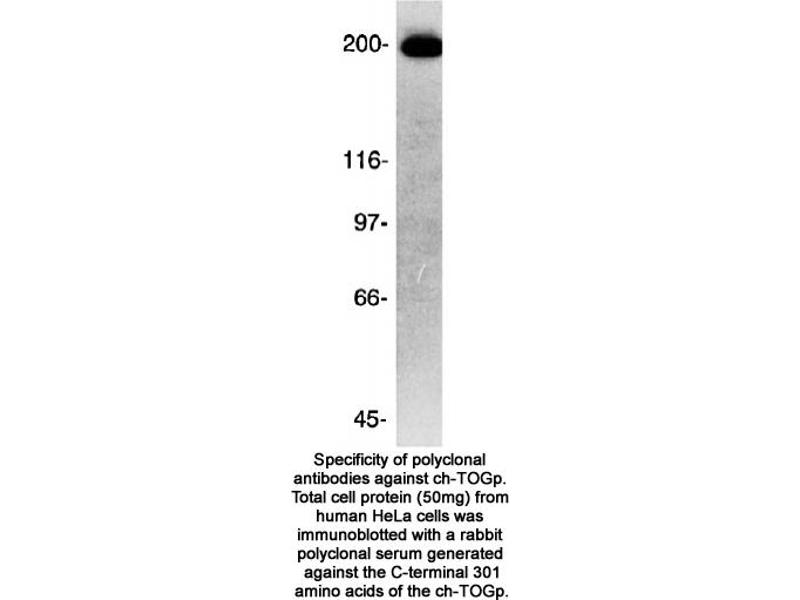 - Reacts with human, mammal, mouse and rat CKAP5 protein