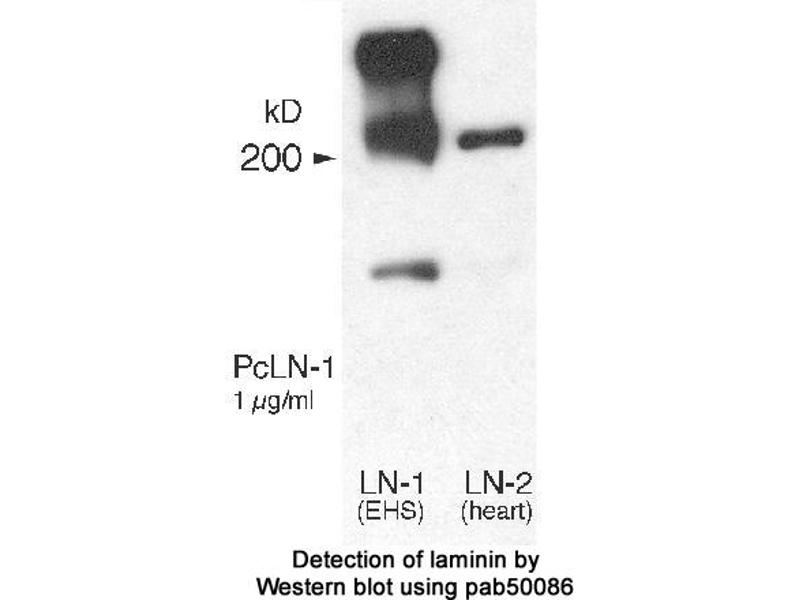 - Reacts well with all laminin isoforms tested: laminin-1 (alpha-1, beta-1, and gamma-1) and laminin-2 (alpha-2, beta-1, and gamma-1) from with mouse, human and rat