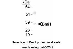 - Reacts with human and mouse ~37 kDa BMI1 protein