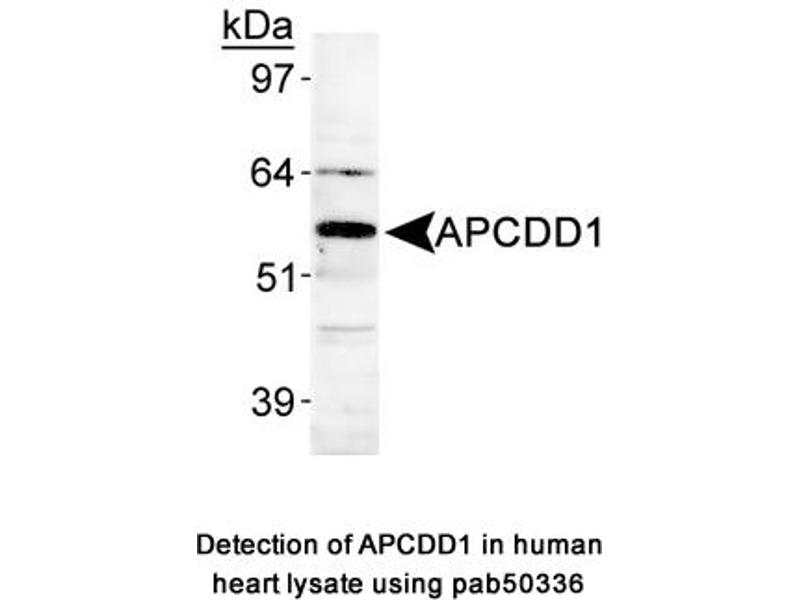- Synthetic peptide derived from internal domain of the human APCDD1 protein. Within residues 400-500.