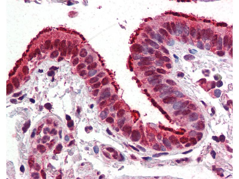 Usage: Immunohistochemistry: This antibody was validated for use in immunohistochemistry on a panel of 21 formalin-fixed, paraffin-embedded (FFPE) human tissues after heat induced antigen retrieval in pH 6.0 citrate buffer. After incubation with the primary antibody, slides were incubated with biotinylated secondary antibody, followed by alkaline phosphatase-streptavidin and chromogen. The stained slides were evaluated by a pathologist to confirm staining specificity. The optimal working concentration for this antibody was determined to be 10 μg/mL. Histology Positive Control Tissue: Human tonsil. Western Blot: LS-B2866 detects a band of approximately 85kD in Tonsil extracts. -