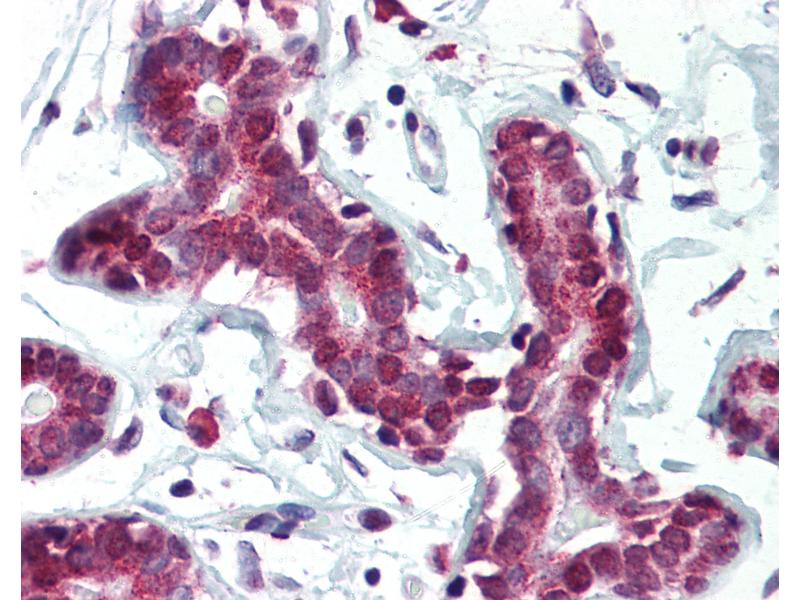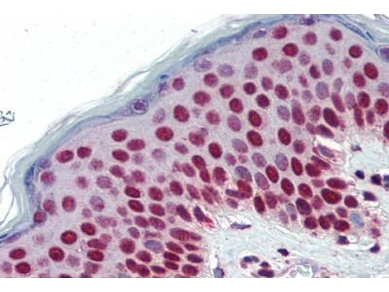 Usage: Immunohistochemistry: This antibody was validated for use in immunohistochemistry on a panel of 21 formalin-fixed, paraffin-embedded (FFPE) human tissues after heat induced antigen retrieval in pH 6.0 citrate buffer. After incubation with the primary antibody, slides were incubated with biotinylated secondary antibody, followed by alkaline phosphatase-streptavidin and chromogen. The stained slides were evaluated by a pathologist to confirm staining specificity. The optimal working concentration for this antibody was determined to be 5 μg/mL. -