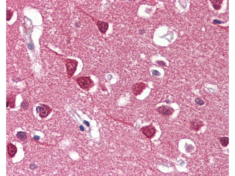 Usage: Immunohistochemistry: This antibody was validated for use in immunohistochemistry on a panel of 21 formalin-fixed, paraffin-embedded (FFPE) human tissues after heat induced antigen retrieval in pH 6.0 citrate buffer. After incubation with the primary antibody, slides were incubated with biotinylated secondary antibody, followed by alkaline phosphatase-streptavidin and chromogen. The stained slides were evaluated by a pathologist to confirm staining specificity. The optimal working concentration for this antibody was determined to be 5 μg/mL. -