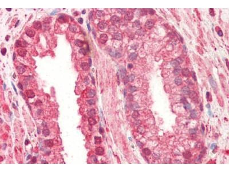 Usage: Immunohistochemistry: This antibody was validated for use in immunohistochemistry on a panel of 21 formalin-fixed, paraffin-embedded (FFPE) human tissues after heat induced antigen retrieval in pH 6.0 citrate buffer. After incubation with the primary antibody, slides were incubated with biotinylated secondary antibody, followed by alkaline phosphatase-streptavidin and chromogen. The stained slides were evaluated by a pathologist to confirm staining specificity. The optimal working concentration for this antibody was determined to be 5 μg/mL. -