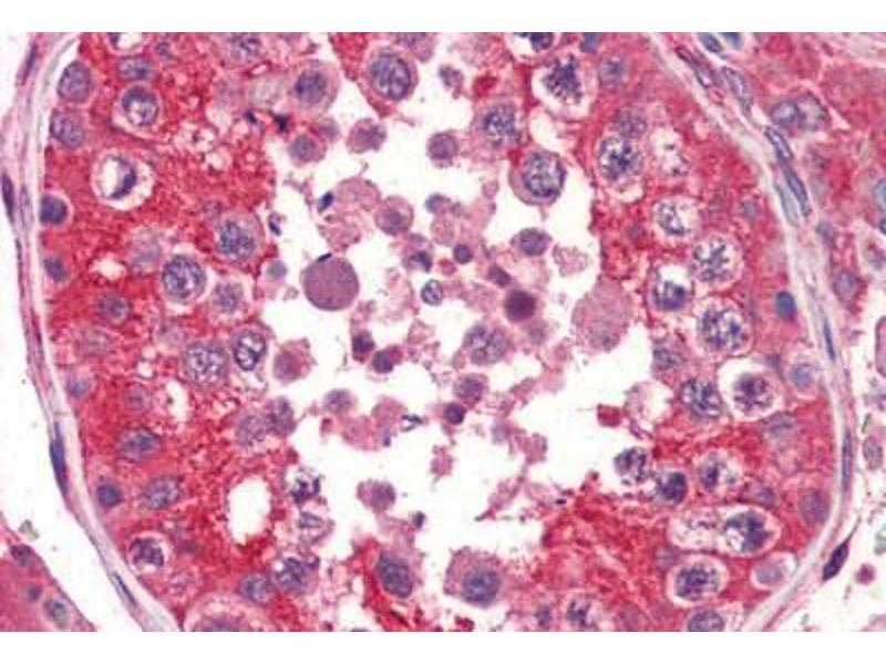 Usage: Immunohistochemistry: This antibody was validated for use in immunohistochemistry on a panel of 21 formalin-fixed, paraffin-embedded (FFPE) human tissues after heat induced antigen retrieval in pH 6.0 citrate buffer. After incubation with the primary antibody, slides were incubated with biotinylated secondary antibody, followed by alkaline phosphatase-streptavidin and chromogen. The stained slides were evaluated by a pathologist to confirm staining specificity. The optimal working concentration for this antibody was determined to be 5 μg/mL. -