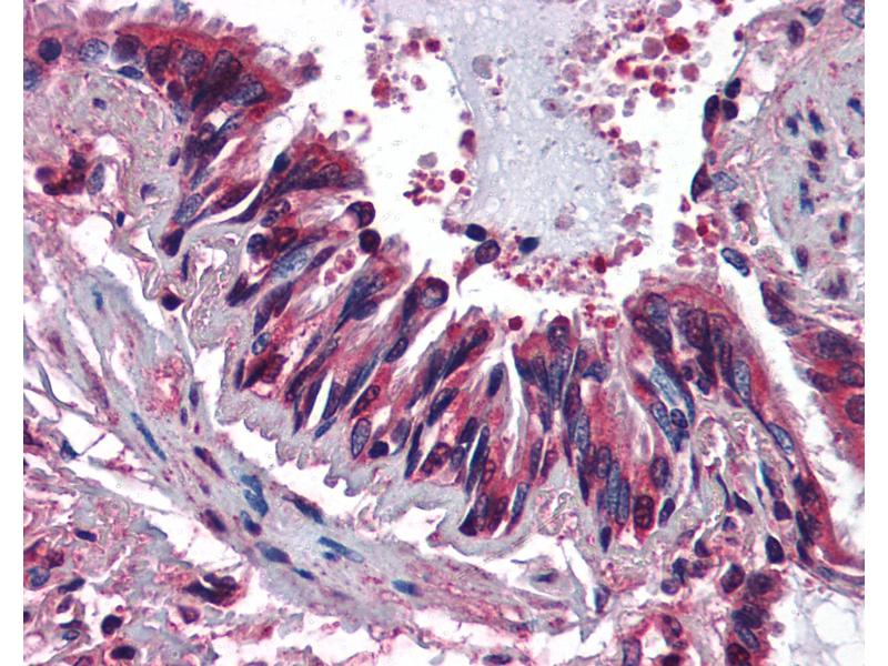 Usage: Immunohistochemistry: This antibody was validated for use in immunohistochemistry on a panel of 21 formalin-fixed, paraffin-embedded (FFPE) human tissues after heat induced antigen retrieval in pH 6.0 citrate buffer. After incubation with the primary antibody, slides were incubated with biotinylated secondary antibody, followed by alkaline phosphatase-streptavidin and chromogen. The stained slides were evaluated by a pathologist to confirm staining specificity. The optimal working concentration for this antibody was determined to be 10 μg/mL. -