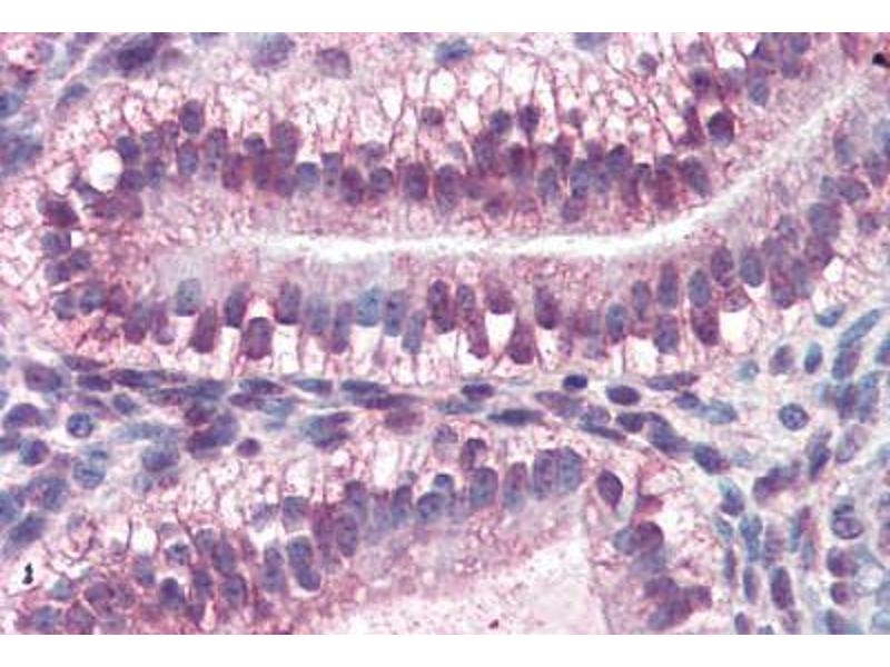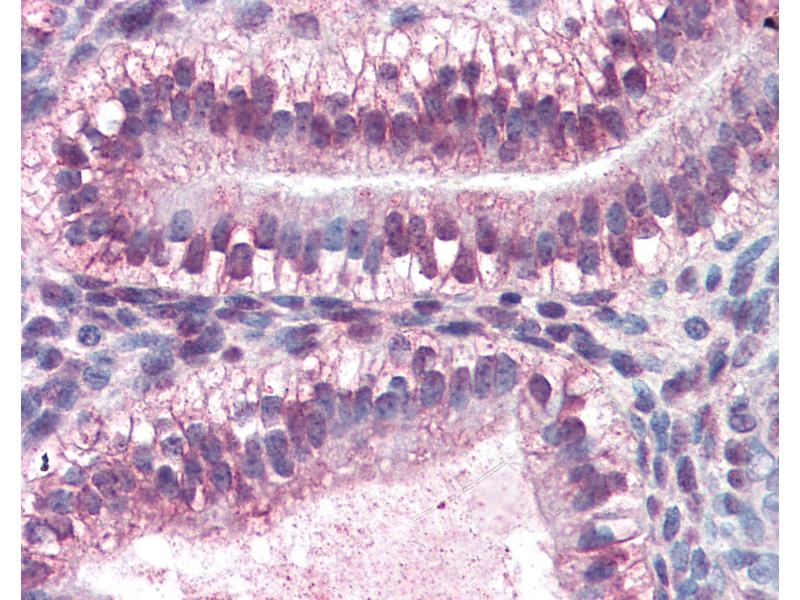 Usage: Immunohistochemistry: This antibody was validated for use in immunohistochemistry on a panel of 21 formalin-fixed, paraffin-embedded (FFPE) human tissues after heat induced antigen retrieval in pH 6.0 citrate buffer. After incubation with the primary antibody, slides were incubated with biotinylated secondary antibody, followed by alkaline phosphatase-streptavidin and chromogen. The stained slides were evaluated by a pathologist to confirm staining specificity. The optimal working concentration for this antibody was determined to be 10 μg/mL. -