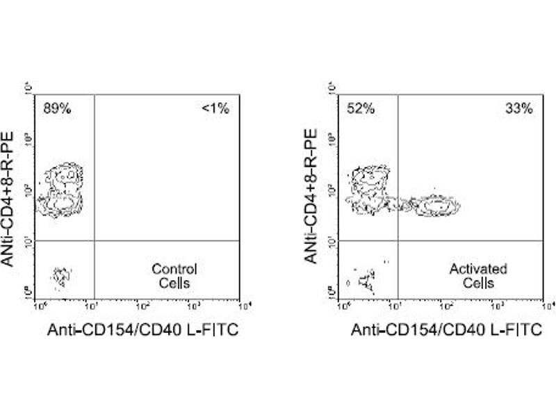 CD154, formerly known as CD40 ligand and gp39, is a type II integral membrane protein and a member of the tumor necrosis factor (TNF) family of ligands. (Ref.1-7) It is an important accessory molecule in T cell-B cell costimulatory interactions, and is expressed predominantly on activated CD4+ T lymphocytes. It is also present on the surface of activated Th0, Th1, and Th2 T cell clones. Its expression is transient and cyclosporinsensitive. (Ref.6) The MR1 monoclonal antibody binds to murine CD154 with high affinity, blocks binding to CD40, and blocks CD154 function. (Ref.1,5) Administration of this antibody to mice blocks the ability to mount primary and secondary immune responses to TD antigens, yet does not alter the immune response to TI antigens. (Ref.4)Synonyms: CD40 ligand, CD40-L, CD40LG, GP39, T-cell antigen Gp39, TNF-related activation protein, TNFSF5, TRAP, Tumor necrosis factor ligand superfamily member 5
