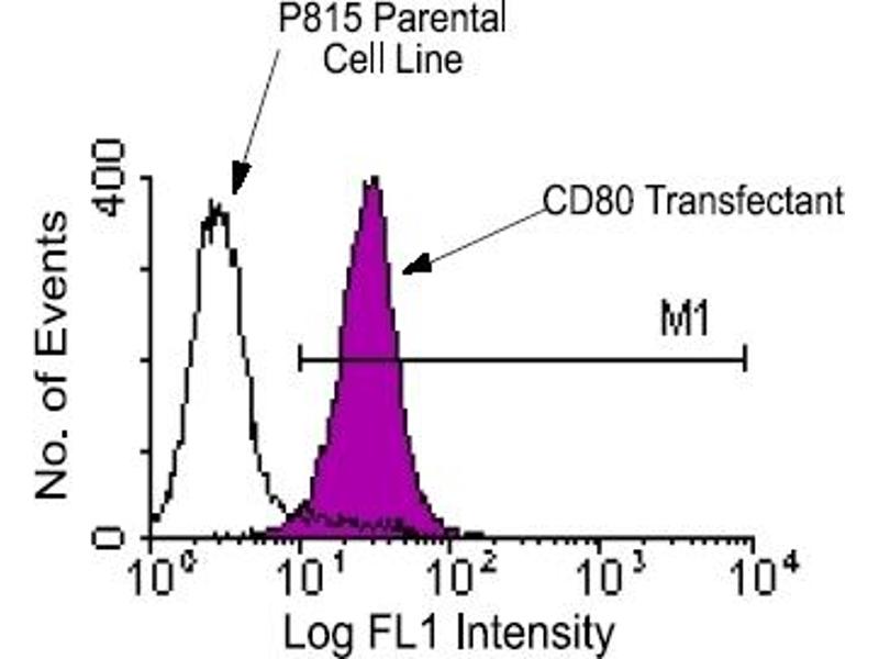 - CD80 is a member of the Ig superfamily and serves as the ligand for two T cell molecules, CD28 and CTLA4. Interactions between CD28 and CD80 on activated B cells result in enhanced T cell activation. CD80 is rapidly induced on the surface of in vitro activated B cells, Epstein Barr Virus (EBV) transformed B cell lines, Burkitts lymphoma cell lines, freshly isolated follicular B lymphoma cells, T cells, and monocytes. It is also expressed at high levels in dendritic cells. It reacts weakly with a small proportion of non activated normal B cells and with HTLV1 infected T cells. CD80 does not react with peripheral monocytes, resting and activated normal T cells, T cell lines and T cell clones, nor with myelomonocytic cell lines.Synonyms: Activation B7-1 antigen, B7-1, B7.1, BB1, CD28LG, CD28LG1, CTLA-4 counter-receptor B7.1, LAB7, T-lymphocyte activation antigen CD80