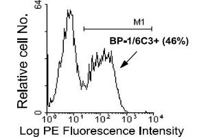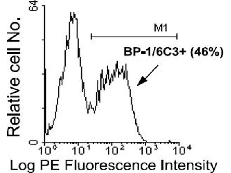 BP1, also known as Ly51/6C3 antigen, is a type II homodimeric transmembrane glycoprotein formed by two disulfide-linked chains of 140 kDa. (Ref.1,2) Originally identified on the surface of pre-B cell lymphomas (Ref.1,3) the cDNA encoding BP1 has been cloned and found to represent Aminopeptidase A. (Ref.4,5) It is expressed at high levels on bone marrow stromal cell lines which support in vitro B lymphopoiesis and on a wide variety of Mouse tissues known to possess aminopeptidase activity. (Ref.6-8) Subsets of normal bone marrow pre-B and B cells express low levels of BP1, which is rapidly upregulated on pre-B cells in the presence of IL-7. (Ref.9,10) The BP1 marker is commonly used to identify B cells in different stages of development. (Ref.11)Synonyms: Aminopeptidase A, Differentiation antigen gp160, EAP, ENPEP