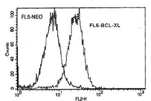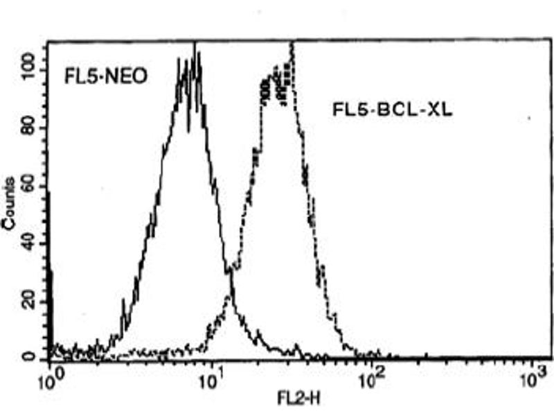 - Apoptosis, or programmed cell death, is a well-documented phenomenon in many cellular systems. (Ref.1) It plays a key role in tissue and organ development as well as in adult tissues during cell turnover. Apoptosis can be induced by a variety of internal and external stimuli including growth factor deprivation, cytokine treatment, antigen-receptor engagement, cell-cell interactions, irradiation and glucocorticoid treatment. (Ref.2) Bcl-2 and one of its homologues, Bcl-xL, protect cells from apoptosis (Ref.3,4) while other homologues of Bcl-2 such as Bax, Bad and Bak have been shown to enhance apoptosis. (Ref.5-8) Bcl-xL has been shown to block apoptosis which is induced by a variety of stimuli and, under certain conditions, offers greater protection against apoptosis than Bcl-2. (Ref.9-13) In contrast, Bad and Bax inhibit the protective functions of Bcl-xL and Bcl-2, respectively. Although heterodimerization between Bcl-xL/Bad and Bcl-2/Bax was originally thought to be essential for the differential anti-apoptotic activity of Bcl-xL and Bcl-2. (Ref.5,14) Other results suggest that the formation of heterodimers may not be necessary for this death-repressing activity. (Ref.15,16)Synonyms: BCL2L, BCL2L1, BCLX, Bcl-2-like protein 1, Bcl-x, Bcl2-L-1, bcl-xL, bcl-xS