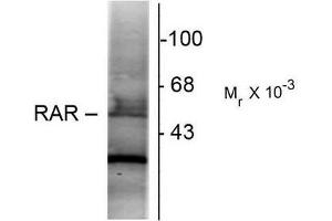 The Mouse Monoclonal anti-Retinoic Acid Receptor alpha antibody has been validated for WB. It is suitable to detect Retinoic Acid Receptor alpha in samples from Human, Mouse, Cow and Dog.