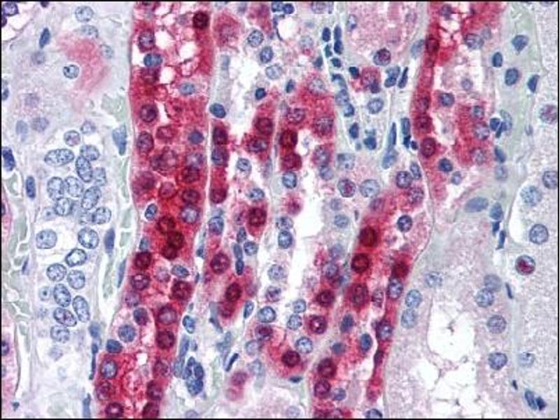 Immunohistochemistry on Paraffin Sections: 10 μg/mL. Western Blot: 0.5-2.0 μg/mL.