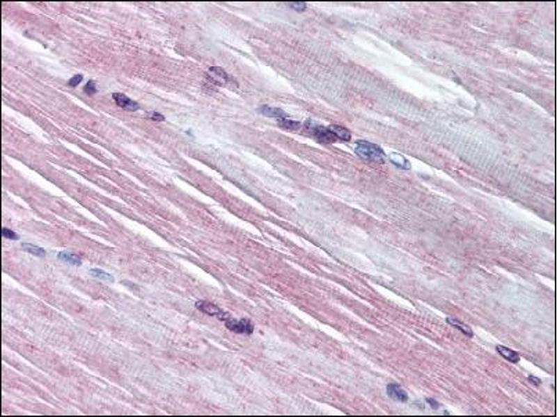 AMP deaminase (AMPD) is an allosteric enzyme that plays a critical role in energy metabolism. There are three functional isoforms of AMPD. AMPD1 is the skeletal muscle-specific isoform M located in type II muscle fibers, neuromuscular junctions and in capillaries. Defects in AMPD1 are the cause of adenosine monophosphate deaminase deficiency muscle type (AMPDDM). AMPDDM is a metabolic disorder resulting in exercise-related myopathy. It is characterized by exercise-induced muscle aches, cramps, and early fatigue.Synonyms: AMP deaminase isoform M, Myoadenylate deaminase