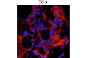 Western Blot: 1/1000. Immunohistochemitry: 1/100. The antibody works well for Immunohistochemistry on Paraformaldehyde-Fixed Sectionswith a simple antigen-retrieval protocol (incubate slides for 20 minutes at 90 °C in 10 mMsodium citrate ( pH 6.0)/ 0.1 % Tween-20). Note that in paraffin sections ofFormaldehyde-Fixed fibrotic mouse lung tissue, the antibody recognizes mature collagen Ithat has formed fibrils in the extracellular matrix.