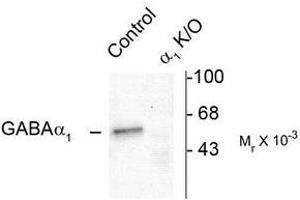 The Rabbit Polyclonal anti-GABRA1 antibody (ABIN372627) specifically detects GABRA1 in WB.