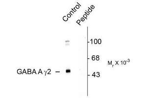Specific for ~45k GABAA Receptor Gamma2 subunit phosphorylated at Ser327. Immunolabeling of the GABAA band is completely blocked by Lambda-phosphatase treatment.