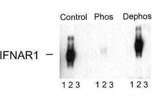 Interferons are widely used therapeutic agents because of their anti tumor and antiviral effects and because of their modulatory effects on the immune system (Biron, 2001, Kirkwood, 2002). These cytokines produce their effects by binding to the Type 1 Interferon-α Receptor (IFNAR1). Down regulation of this receptor plays a key role in determining the magnitude and duration of cytokine signaling. This down regulation is thought to be influenced by phosphorylation of Serine 535 and 539 in the IFNAR1 (Kumar et al., 2003).Synonyms: CRF2-1, Cytokine receptor class-II member 1, Cytokine receptor family 2 member 1, IFN-R-1, IFN-alpha Receptor alpha, IFN-alpha/beta receptor 1, Interferon-alpha/beta receptor alpha chain, Type I interferon receptor 1
