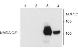 This antibody recognizes the ~120k NR1 subunit of the NMDA receptor containing the C2' splice variant insert. Does not recognize the NR1 subunits of the NMDA receptor that do not contain the C2' insert.