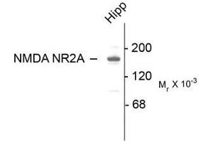 This antibody recognizes the ~180k NR2A subunit of the NMDA Receptor in Western Blots of most brain regions. No reactivity towards the NR2B and NR2C subunits. Immunolabeling is blocked by pre-adsorption of antibody with the fusion protein used to generate the antibody.