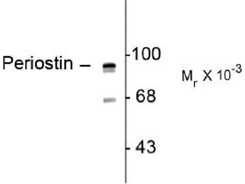 Periostin is a matricellular protein, i.e. an extracellular matrix protein that interacts both with other ECM proteins and with cell-surface receptors. Like many other matricellular proteins, the function of periostin is important both in embryonic development and in the remodeling of adult tissues in response to pathological insults. Periostin was originally isolated as an osteoblast-specific marker that functions as a cell adhesion molecule for preosteoblasts and is thought to be involved in osteoblast recruitment, attachment and spreading (Kruzynska-Frejtag A. et al., 2004). Periostin has recently been shown to promote collagen fibrogenesis, inhibit differentiation of progenitor cells into cardiomyocytes and to be essential in maintaining the biomechanical properties of the adult myocardium (Norris et al., 2008)Synonyms: OSF-2, OSF2, Osteoblast-specific factor 2, PN, POSTN