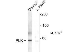 This antibody recognizes the ~66k PLK protein phosphorylated at Thr210. Immunolabeling of the PLK band is completely blocked by lambda-phosphatase treatment.