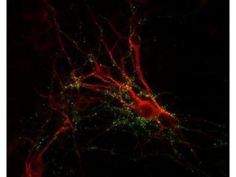 Synapsin I plays a key role in synaptic plasticity in brain (Feng et al., 2002, Nayak et al., 1996). This effect is due in large part to the ability of the synapsins to regulate the availability of synaptic vesicles for release. In addition to its role in plasticity, the expression of synapsin I is a precise indicator of synapse formation (Moore and Bernstein, 1989, Stone et al., 1994). Thus, synapsin I immunocytochemistry provides a valuable tool for the study of synaptogenesis. The role of synapsin in synaptic plasticity and in synaptogensis is regulated by phosphorylation (Jovanovic et al., 2001, Kao et al., 2002).Synonyms: Brain protein 4.1, SYN1, Synapsin I