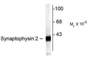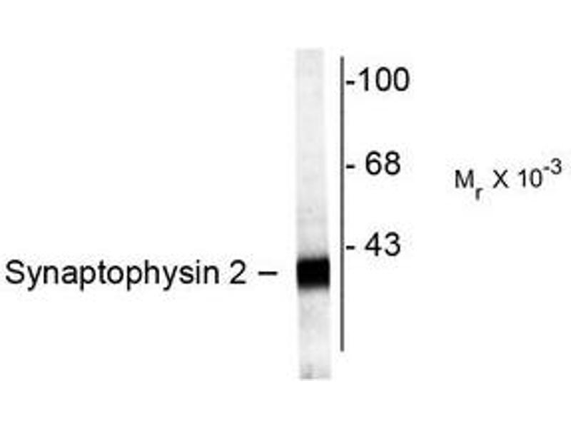 - This antibody recognizes the ~38k Synaptophysin 2 protein.
