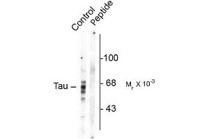 Tau is a key microtubule-associated protein that plays an important role in the formation of microtubules in axons (Binder et al. 1985). Six tau isoforms have been identified as products of a single gene produced by alternative mRNA splicing (Goedert 1990). Tau mutations have been implicated in many neurodegenerative disorders such as Alzheimer's disease (AD), Pick's disease and progressive supranuclear palsy. It has been well documented that hyperphosphorylated tau is a major component of paired helical filaments in AD brain (Lee 1995). Serine 416 has been demonstrated to be a major phosphorylation site in vitro by CaM kinase II (Steiner at al. 1990).Synonyms: MAPTL, MTBT1, Microtubule-associated protein tau, Neurofibrillary tangle protein, PHF-tau, Paired helical filament-tau