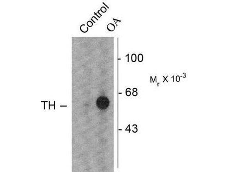 Tyrosine Hydroxylase (TH) is the rate-limiting enzyme in the synthesis of the catecholamines Dopamine and Norepinephrine. TH antibodies can therefore be used as markers for dopaminergic and noradrenergic neurons in a variety of applications including depression, schizophrenia, Parkinson's disease and drug abuse (Kish et al., 2001, Zhu et al., 2000, Zhu et al., 1999). TH antibodies can also be used to explore basic mechanisms of dopamine and norepinephrine signaling (Witkovsky et al., 2000, Salvatore et al., 2001, Dunkley et al., 2004). The activity of TH is also regulated by phosphorylation (Haycock et al., 1982, Haycock et al., 1992, Jedynak et al., 2002). Phospho-specific antibodies for the phosphorylation sites on TH can be used to great effect in studying this regulation and in identifying the cells in which TH phosphorylation occurs.Synonyms: TYH, Tyrosine 3-hydroxylase