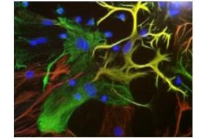 - Vimentin is the major protein subunit of the 10nm or intermediate filaments (IFs) found in many kinds of mesenchymal and epithelial cells as well as developing neuronal and astrocytic precursor cells in the CNS. Vimentin is thought to be critically involved in lymphocyte adhesion and transmigration (Nieminen M et al. 2006). Copolymers are frequently formed between vimentin and other IFs, such as GFAP (in many kinds of astrocytes), desmin (in muscle cells) and neurofilament proteins (in developing neurons). Antibodies to vimentin are useful in studies of stem cells and generally to reveal the filamentous cytoskeleton. Recent studies suggest that vimentin affects prostate cancer cells motility and invasiveness (Zhao et al. 2008).Synonyms: VIM