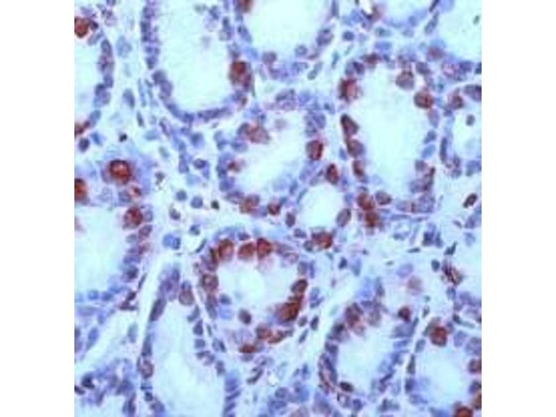 Immunohistochemistry on Formalin-fixed, Paraffin-Embedded Tissues: 1/200Antigen Retrieval: Boil tissue section in 10 mM citrate buffer, pH 6.0 for 10 min followed bycooling at RT for 20 min. Slides must be washed in between steps. Rinse slides withPBS/0.05 % Tween. Incubation Time: 10 minutes at RT. Positive Control: Pituitary.