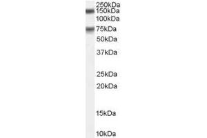 Peptide ELISA: Limit dilution 1: 32000. Western blot: 0.1-0.3´μg/mL. Experiments gave bands at approx 75 kDa and 150 kDa inhuman testis lysates and in cell lines HeLa and Jurkat after 0.1 μg/mL antibody staining. The 150 kDa band is explained by glycosylation of this member of the AMPK family. Thisprotein has a calculated MW of 74.6 kDa according to NP_055606.1. Other applications not tested. Optimal dilutions are dependent on conditions and should be determined by the user.
