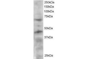 Peptide ELISA: Limit dilution 1: 8000. Western blot: 1-3 μg/mL. Approx 60-65 kDa and 45 kDa bands seen in HeLa lysate. Other applications not tested. Optimal dilutions are dependent on conditions and should be determined by the user.