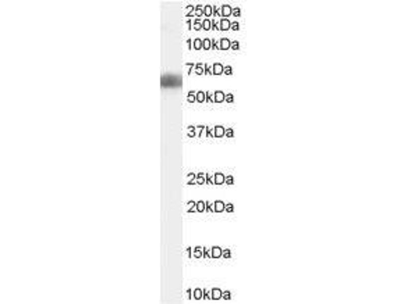 Peptide ELISA: Limit dilution 1: 16000. Western blot: 0.03-0.1 μg/mL. Approx.70 kDa band observed in lysates of cell line HEK293(calculated MW of 38.0 kDa according to NP_037385.2, NP_056965.3 andNP_001018067.1). The observed molecular weight corresponds to earlier findings inliterature (Krupnik et al, Gene.1999 Oct 1,238(2): 301-13. , PMID: 10570958 ).
