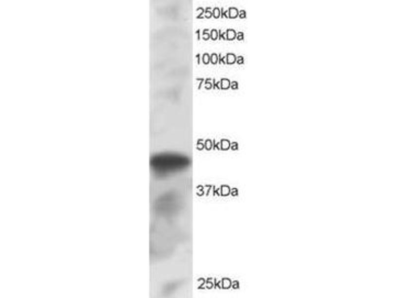 Peptide ELISA: Limit dilution 1: 8000. Western blot: 0.5-2 μg/mL. Approx 45-50 kDa band seen in K562 lysate.