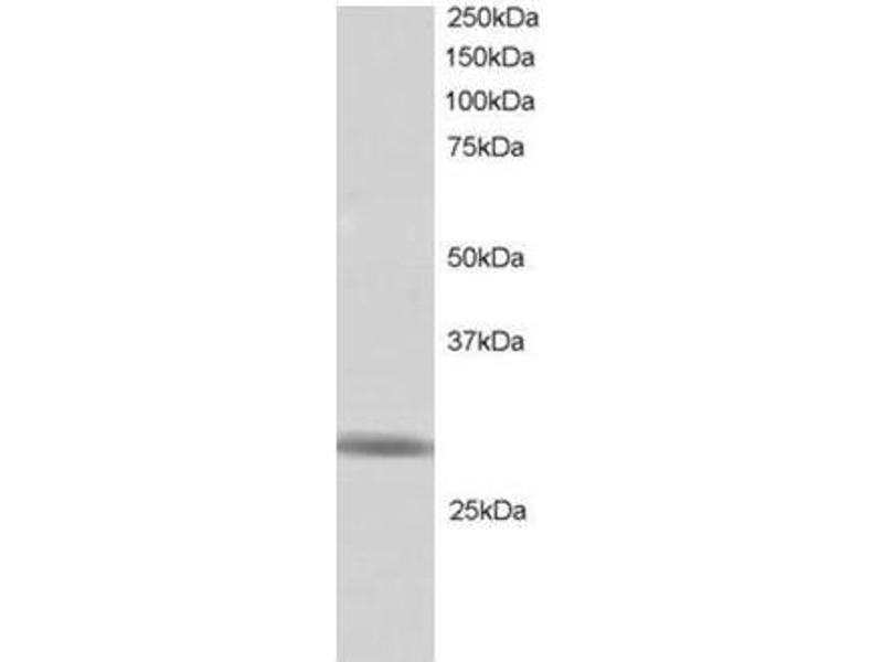 Peptide ELISA: Limit dilution 1: 16000. Western blot: 1 μg/mL. Approx 25-30 kDa band observed in Human Testis lysate (predictedMW of 20 kDa according to NP_057506). Other applications not tested. Optimal dilutions are dependent on conditions and should be determined by the user.